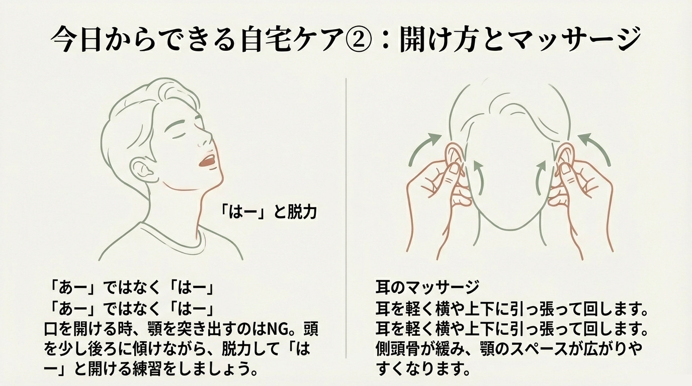 顎関節症は「生活習慣病」の側面もあります。K.Mさんにも指導したケアをご紹介します。